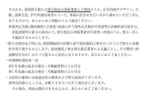 【貸看板】岡山県岡山市北区中井町1丁目1番2号 北側壁面看板①・② ★看板①:賃料 月額3万円(税別)・看板サイズ:約1200×約3000★看板②:賃料 月額4万円(税別)・看板サイズ:約2000×約3000※諸条件御相談ください。 投稿日2026年1月5日2026年1月17日投稿者ise
